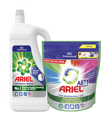 You heard correctly, even on whites! We appreciate the sentiment is exceptionally cliched and over-used in advertisement, but Ariel’s professional range provides unbeatable brightness and stain removal on your whites. Additionally, the detergents formulas ensure whites stay looking white for longer too. Also, the range helps businesses save labour costs in terms of pre-soaking and pre-washing. Proctor & Gamble (P&G) are the manufacturers of the products, and they understand that time is money where businesses are concerned, as such Ariel professional has been designed to produce the same brilliant results in one, low temperature wash as you’d get when utilising a pre-wash strategy.