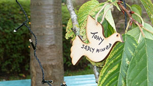 In preparation for the occasion, those planning to attend were invited to write names, and memories or quotes on wooden doves in memory of loved ones, to hang on a tree in the garden of the home.
